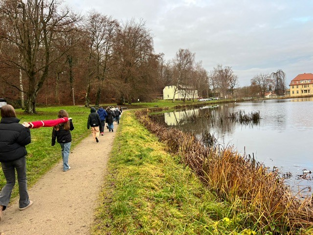 Am Mittwoch, dem 10.12.2025, sah man eine Gruppe von Schülerinnen und Schüler mit einer knapp 3 Meter langen Stange auf der roter Stoff aufgerollt war, gut gelaunt und voller Vorfreude durch Burg Stargard ziehen.